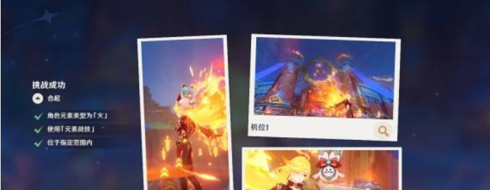 拍摄流程:携带一名火元素角色,与留影点互动,根据个人喜好调整镜头;