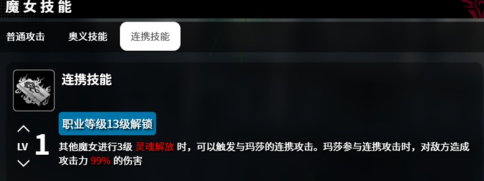 达到13级后,玛莎可以触发连携技。当其他魔女施展3级灵魂解放时,玛莎能联动发动强力连携攻击,极大增强队伍的爆发能力。