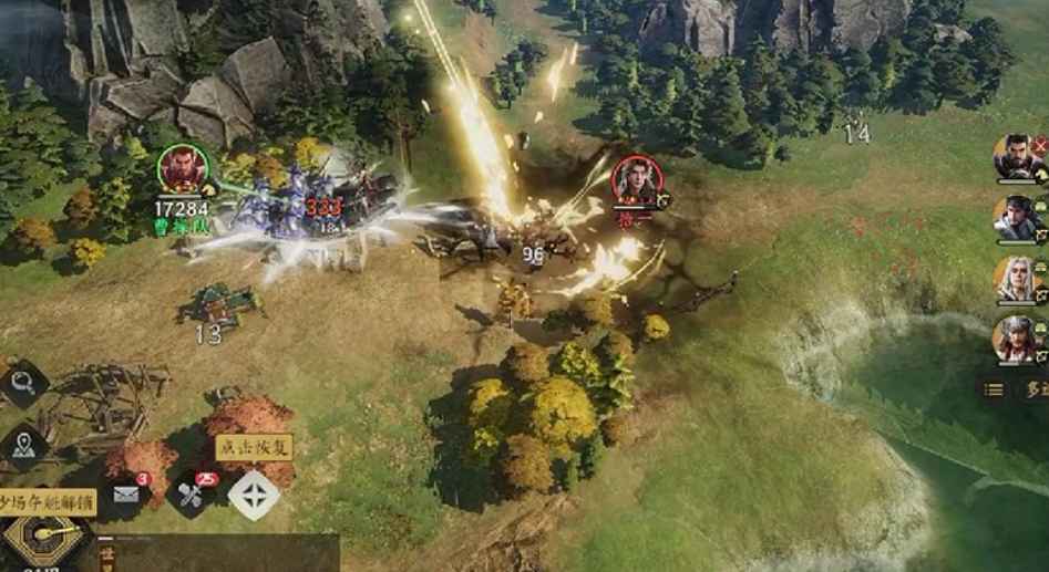 曹操减速控场拖延敌军,貂蝉从侧翼扰乱阵型;
