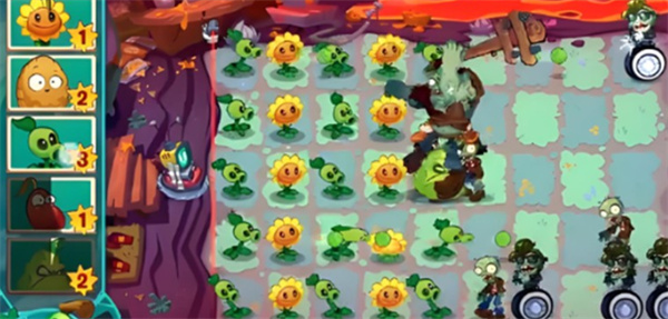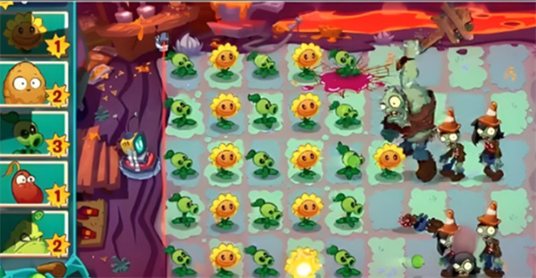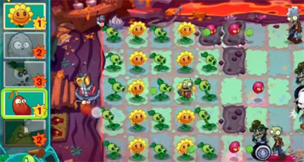 当阳光储备足够时,直接使用 樱桃炸弹 或 火爆辣椒 等范围伤害植物。