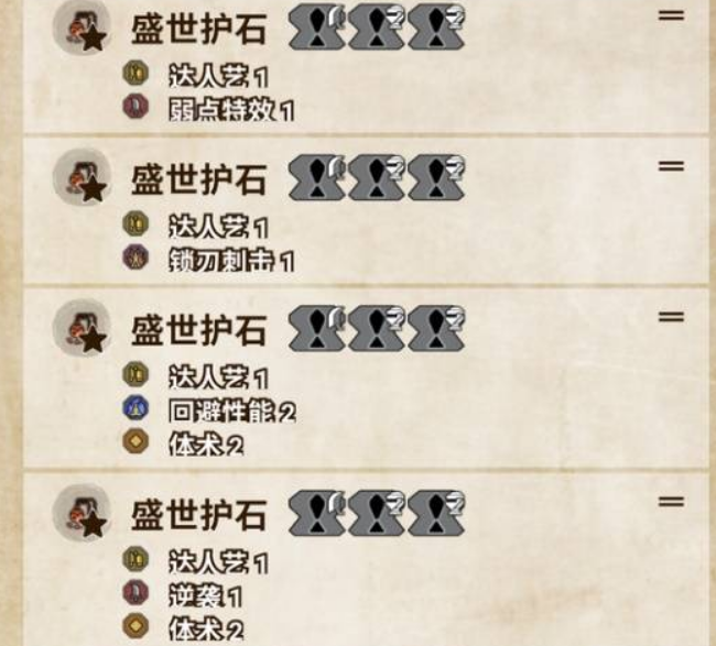 3+8+5型护石(如达艺+逆袭+体术2):可以均衡输出与技能功能,提升整套配装完整度。