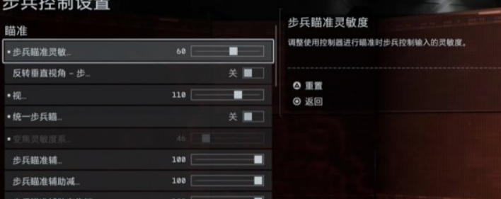 在控制方案的步兵控制设置中,将步兵瞄准灵敏度调到60。