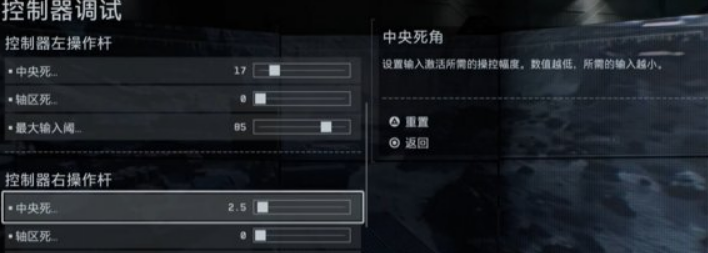 最后在控制器调试中,控制器右操作杆的中央死区调成2.5。