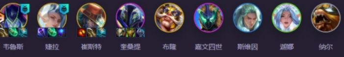 韦鲁斯、婕拉、卡牌、奎桑提、布隆、皇子、乌鸦、风女、纳尔