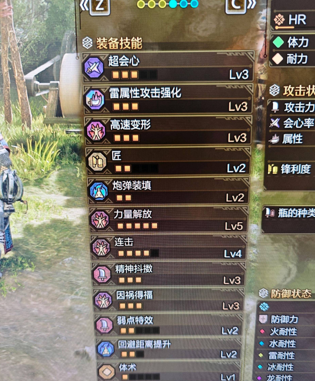 一旦力解发动,整体会心大幅提升,电锯伤害得到进一步放大。在使用护石,将自刷的R7护石,拥有高变形3、弱特1及一个二级孔,契合度极高。则副技能中超会心和集中可根据需求二选一:前者略微提高伤害,后者优化出招手感。