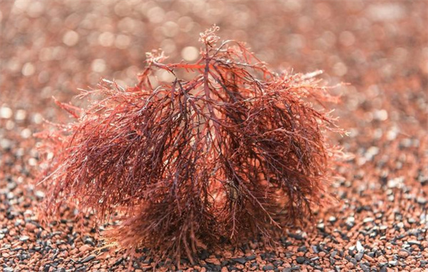 石花菜是一种常见的红藻类植物,通常生长在水质清澈、海水流动缓慢、无严重污染的近海浅水区。它多附着在岩石、贝壳或其他硬质基底上,对生长环境的要求较高,因此常被视为海水洁净程度的指标生物。石花菜富含胶质,经过加工可制成石花粉,用于制作凉粉、果冻等食品,同时在医药、化工等领域也有应用价值。