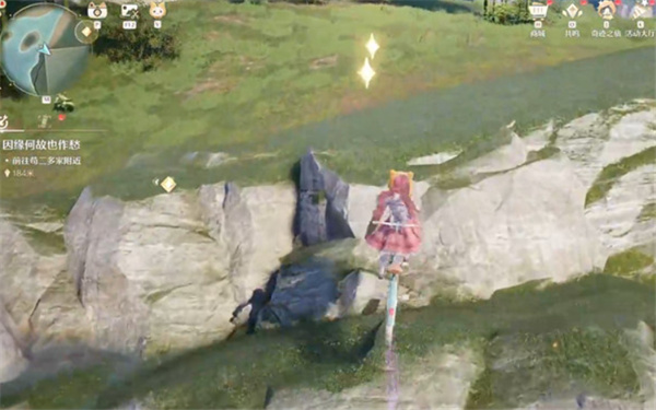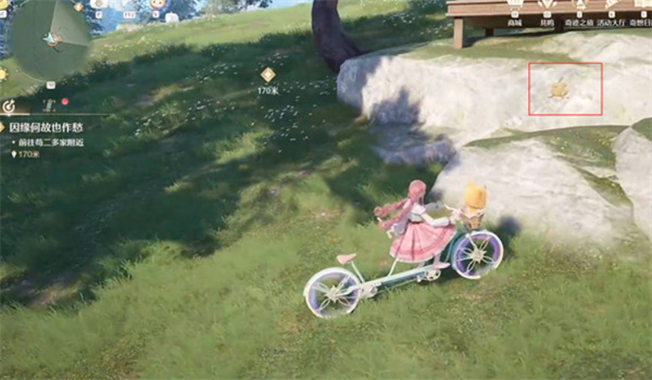 3、途中无需拐弯,保持方向前进,抵达后可在下图红框区域看到史丢丢。