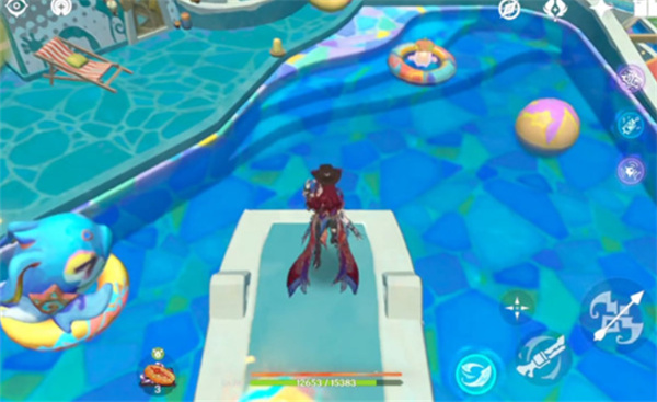 找到高台后,顺着阶梯或地形攀爬到最上层。在高台顶端站稳后准备进行跳水动作。