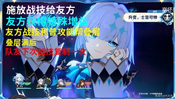 核心能力是通过复制队友的战技,达到类“额外回合”的战术效果,提升输出频率和技能使用效率。