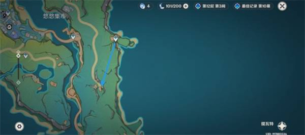 从悠悠集市左侧传送点出发,沿木栈道向西北方向前进