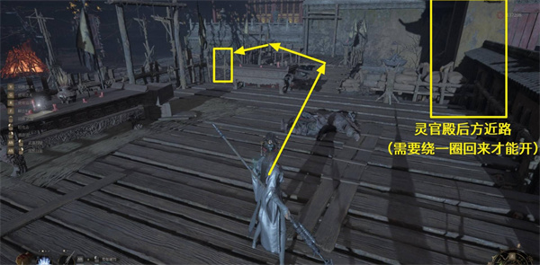 通过内部路线绕至屋顶,从桥梁通往右侧宫殿。