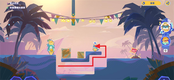 控制两个角色依序向右移动,抵达终点,完成本关挑战。