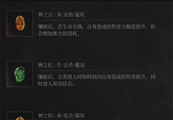 【朱龙玉佩】:提升斩击攻击力,代价是承伤提高。