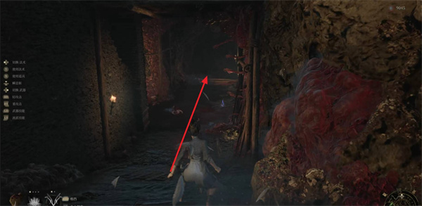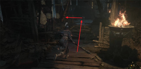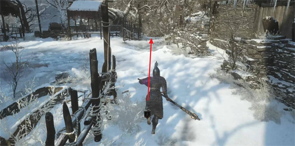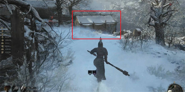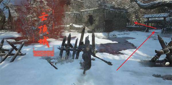 从【云顶外城】神龛出发,右走至木亭门外左拐。