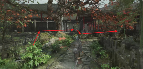 沿着尽头的土路继续往下走,底部左拐进入亭子会触发心魔入侵。
