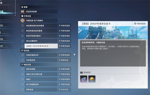 当你达成家园开启条件后,会自动接取特殊任务——29920号【海洋白金卡】。这个任务是进入家园系统的通行证,完成任务后将获取“岛屿所有权凭证”。