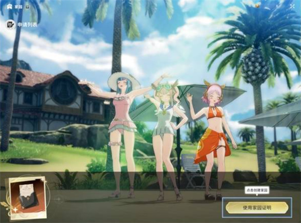 获得“岛屿所有权凭证”后,在菜单中找到【家园】界面,即可正式入驻你的私人岛屿。在入口处还能进入室内空间进行自由布置。