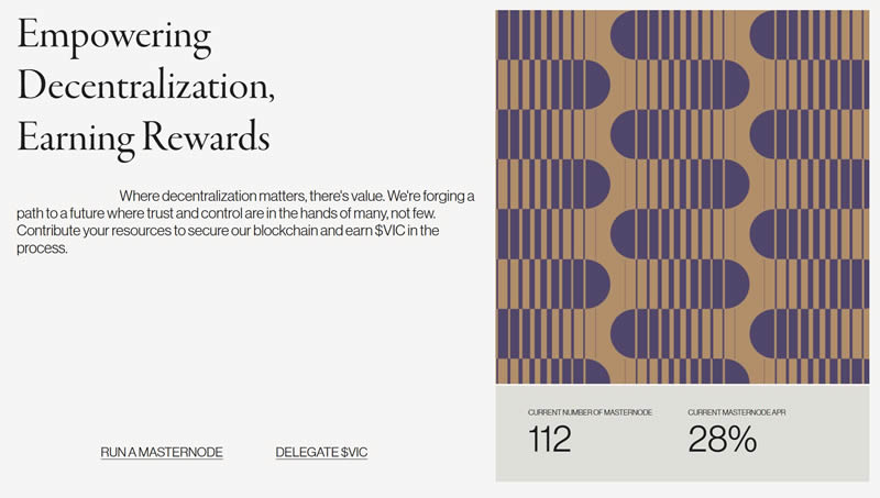 该网络还引入了一种奖励机制,将 VIC 代币分为三部分:40% 分配给主节点用于基础设施建设,50% 分配给质押者,10% 分配给主节点基金会以支持生态系统发展。该奖励模型确保了基础设施激励与社区参与奖励之间维持良好的平衡。