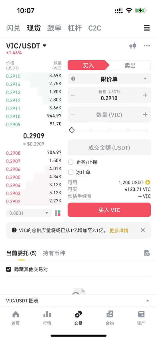 这样就完成了购买VIC币的步骤!