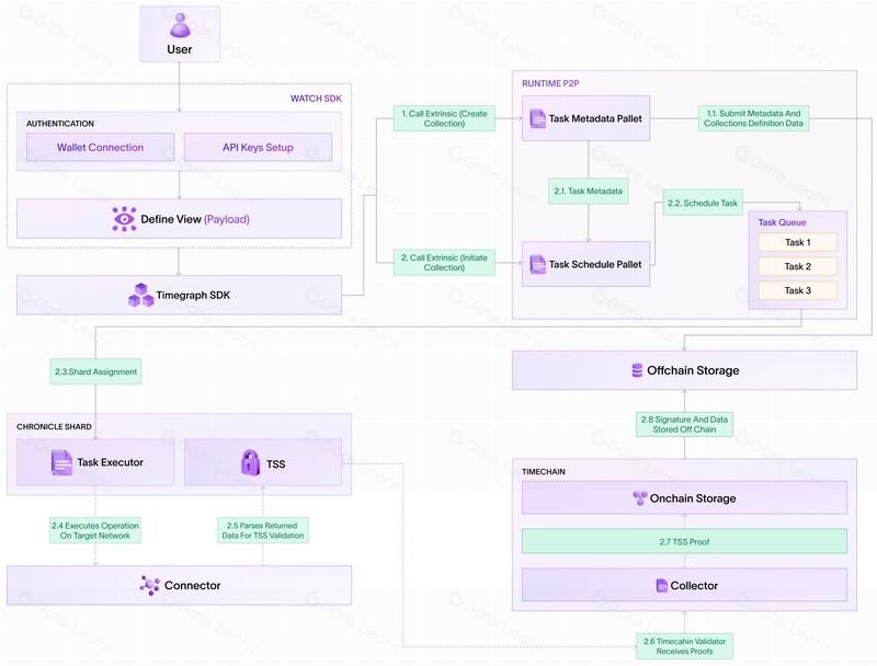 Timechain 基元是生态系统的关键,它提供了问责机制,可验证从数据库检索数据的可靠性和完整性。这些原语还为模拟网络建立了一个标准接口,使其能够接入各种链,从而增强网络的适应性和覆盖范围。