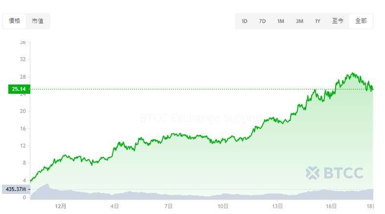 在空投后的几天里,该代币的价值持续攀升,并在12 月21 日触及了35.02 美元的历史最高价。