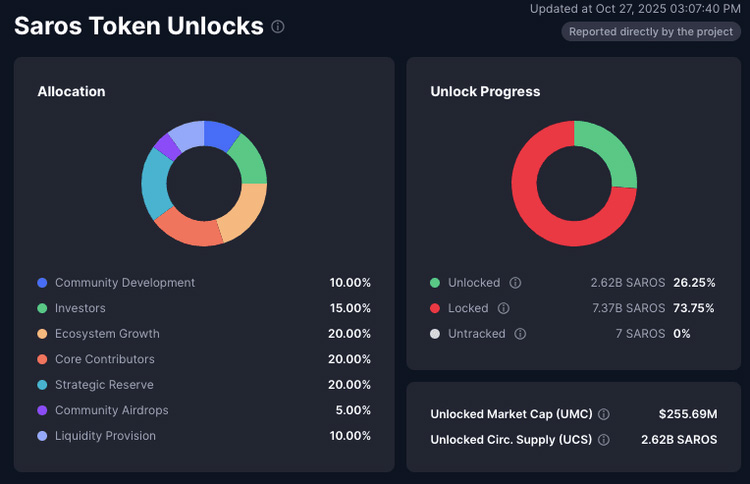 解锁流通供应量:2.62B SAROS