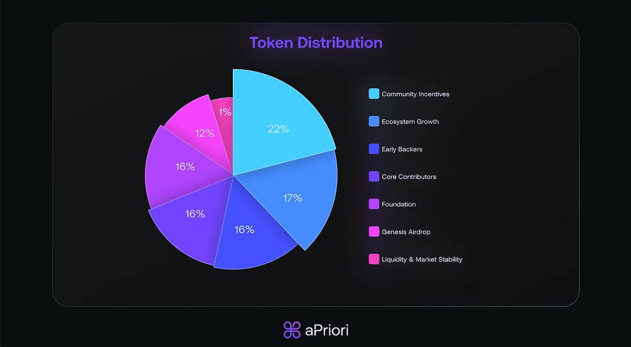 创世空投 12%:对早期贡献者的认可和 aPriori 社区的扩展,包括有意义的链上和数据贡献。