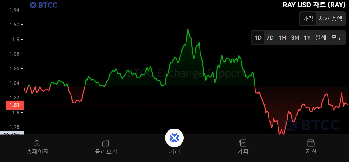 截至当地时间8月28日下午5:36,RAY币在BTCC交易所交易价格为3.87美元,较前24小时上涨7.14%。目前,RAY币在CoinMarketCap上排名第77位,市值为1,024,455,271美元。