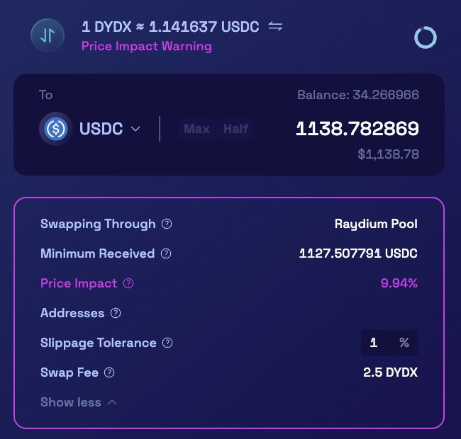 在执行大额掉期或从低流动性池进行掉期时,密切关注价格影响并检查“最低收益”。