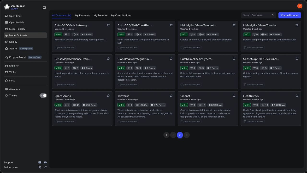 2. 为数据网络贡献:在您的专业领域中选择一个数据网络,例如经济、健康或安全。上传干净、结构化的数据,并附上适当的中继数据,如来源和授权。当模型使用您的数据时,优质的贡献之后可能会获得归因奖励。