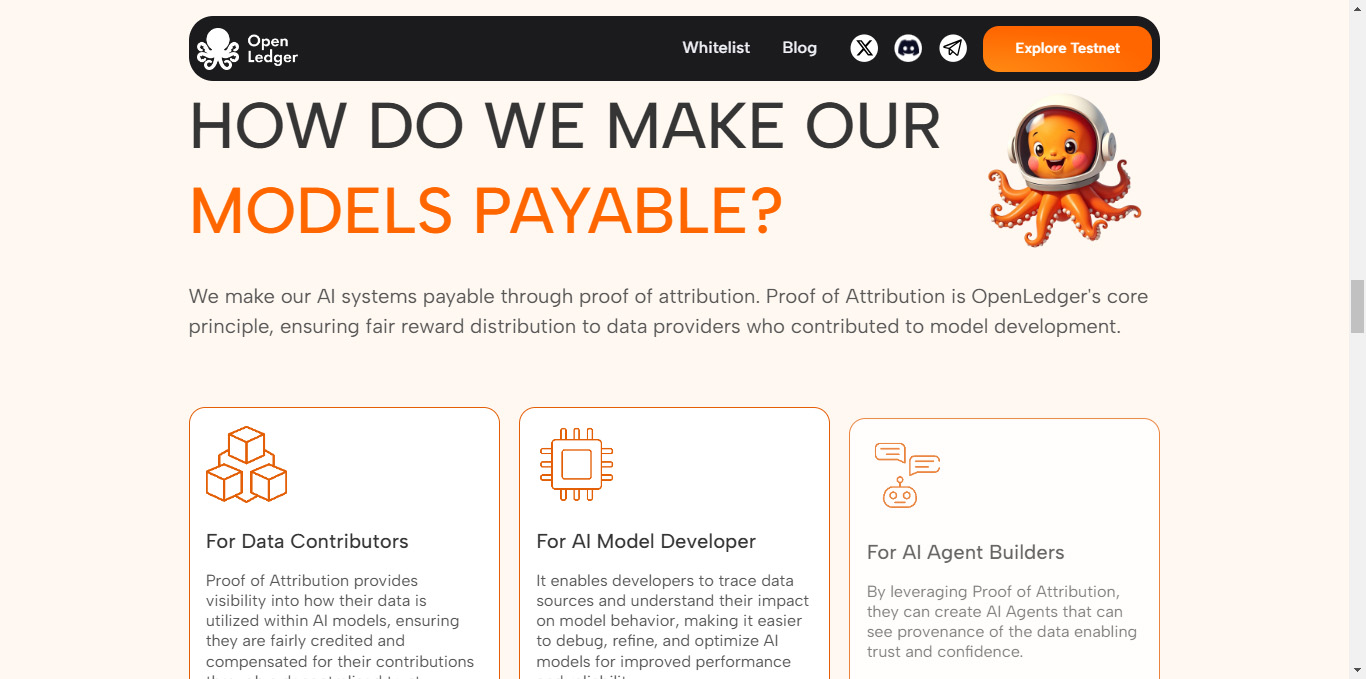 OpenLedger 通过归因证明使其 AI 系统实现可支付。这一核心原则确保为参与模型开发的数据提供者公平分配奖励。