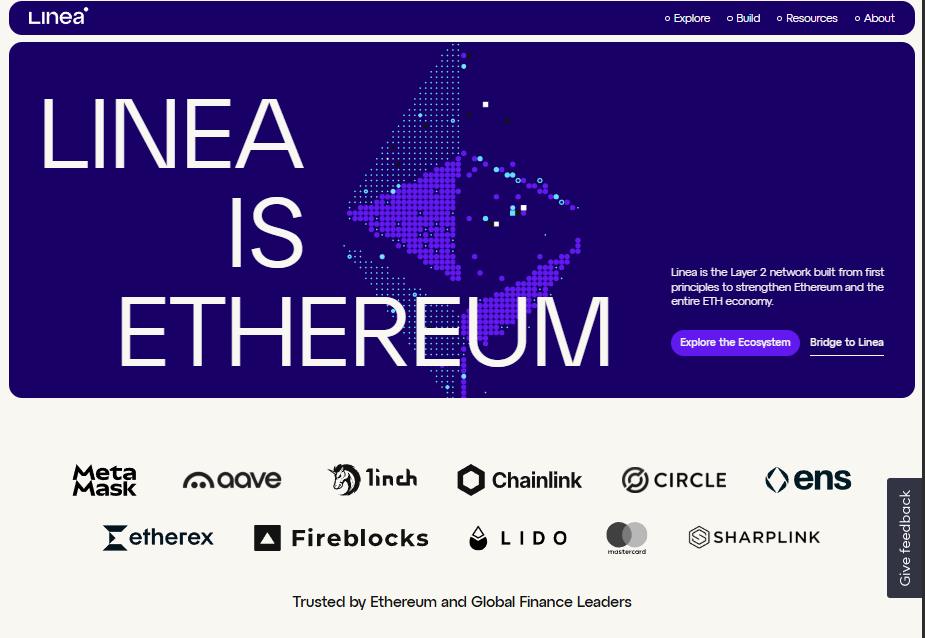 LINEA 官方横幅展示了其与以太坊和支持平台的集成。