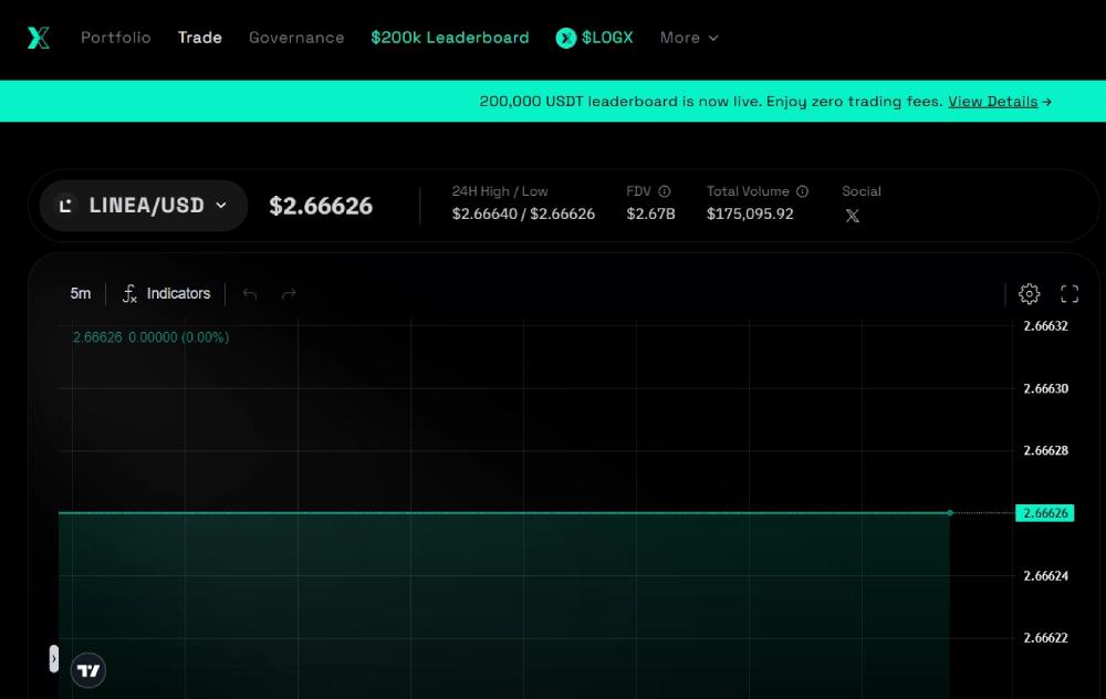 在 LogX 平台上,该代币的当前价格为 2.66626 美元,这是 LINEA 迄今为止的最高上市前价格。FDV(完全稀释估值)估值为 26.7 亿美元,总交易量为 175,095.92 美元。在 XT 平台上,最高买入价为 0.016 美元,最低卖出价为 0.5 美元。