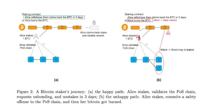 SatLayer 的创新方法源于其与 Babylon 协议的紧密联系。Babylon 是一个基于CosmosSDK 构建的权益证明 (PoS) 区块链,允许在不离开比特币网络的情况下质押原生比特币。它通过一种名为可提取一次性签名 (EOTS) 的加密方法实现这一点,如果验证者存在恶意行为(例如,对交易进行双重签名),质押的比特币将被罚没。