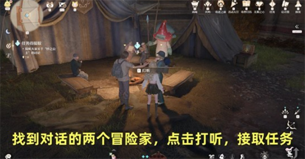 1、传送至【巨兽堡垒正门】锚点,找到两名冒险家,对话并选择打听,接取任务