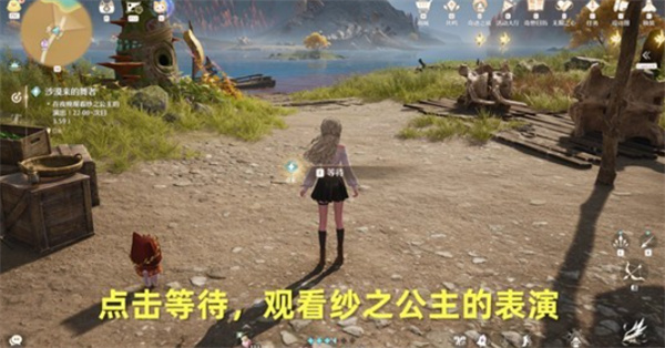 4、选择等待,或将时间调整至22:00—次日3:59,找到纱之公主,提交噗灵并观看表演