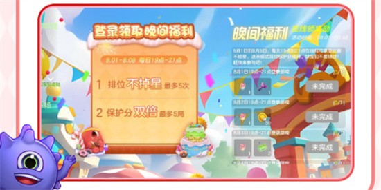周年庆冲段福利,球宝们在指定时段排位不掉星、双倍保护分,还有专属礼物登录送!