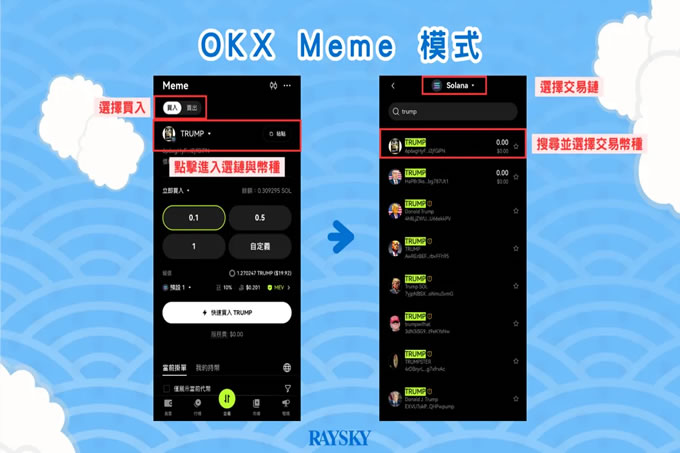 OKX DEX 购买土狗币步骤三:选择OKX DEX 的MEME 交易模式