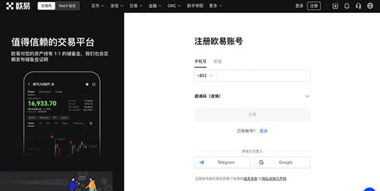 1、打开欧易官网(),在首页点击注册进入注册页面