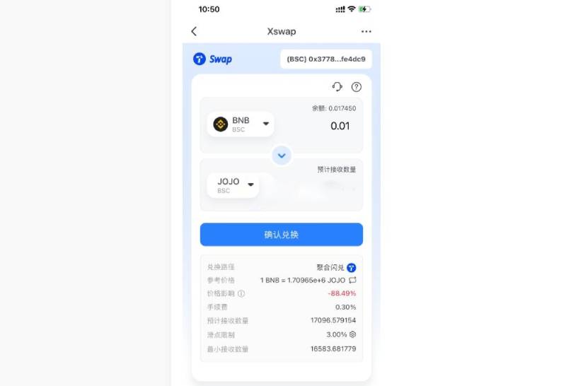 9、点击选择,输入合约地址,添加币种。然后再兑换页面输入BNB数量,下方会更新要兑换币种的数量。