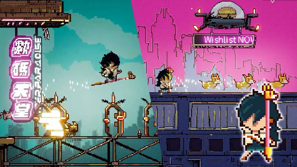 DDmeow Games 表示,「故事模式」适合想专注剧情、减少战斗困难度的玩家。此模式中,玩家可使用超强魔法棒,射出可爱的狗狗大军,萌死敌人,加速找回已逝小狗的记忆,甚至能站在魔法棒上飞行,越过重重障碍,一路欣赏赛博庞克的美景,转眼间又回到咖啡厅閒聊深交。