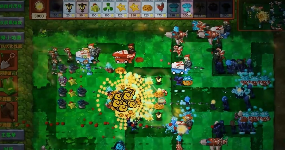 1、开始时总会附带一个浮空仙人球,不是单独植物而是本体的附属,会锁定全屏的僵尸攻击。