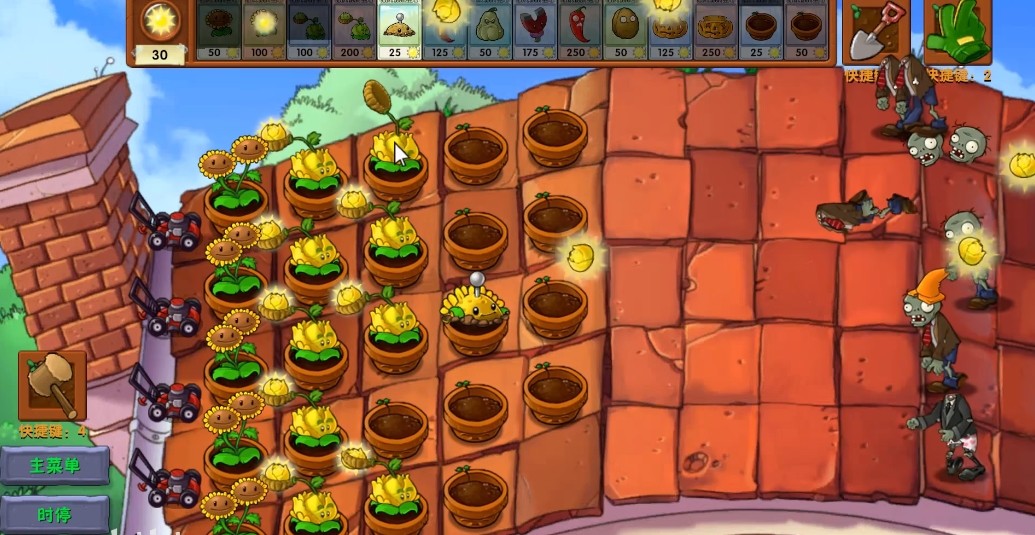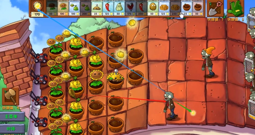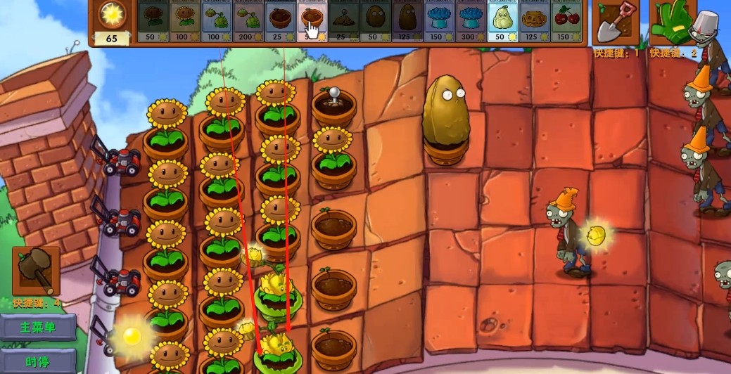 经典塔防模式飞行僵尸无视路线前进,也不会啃咬在路线以外的植物