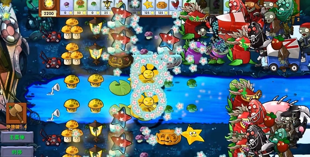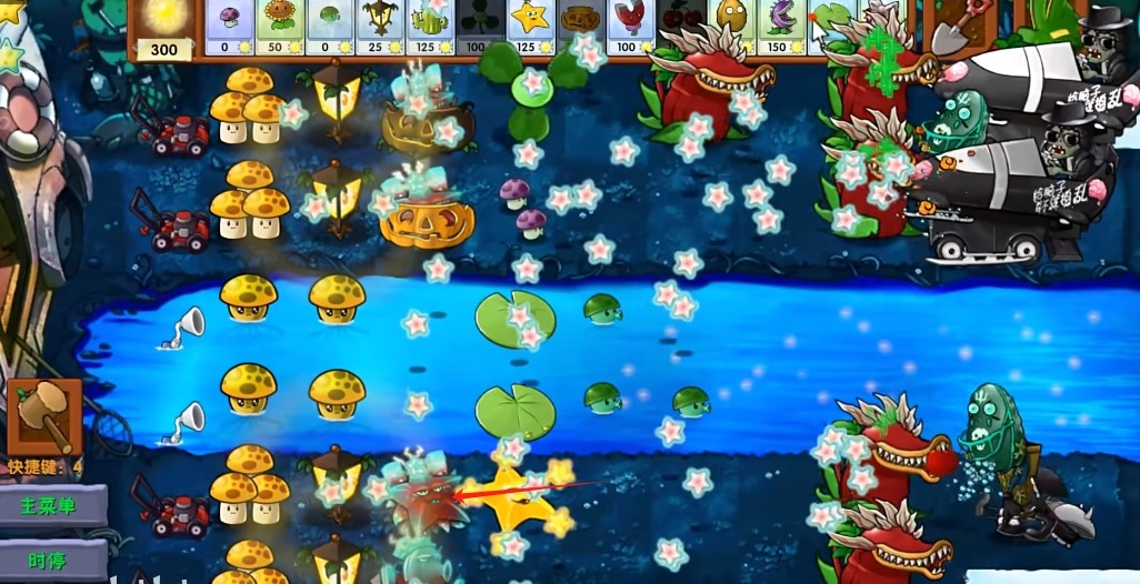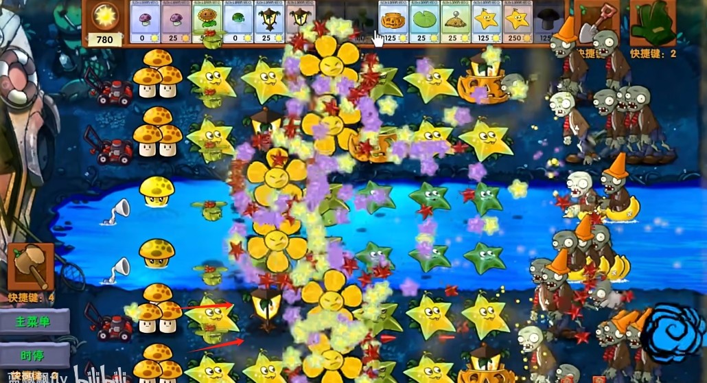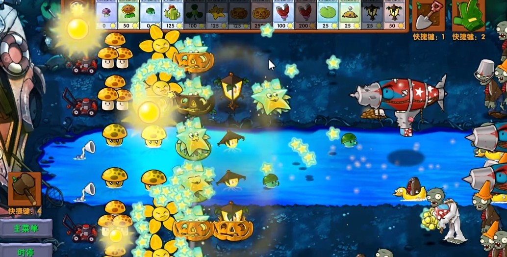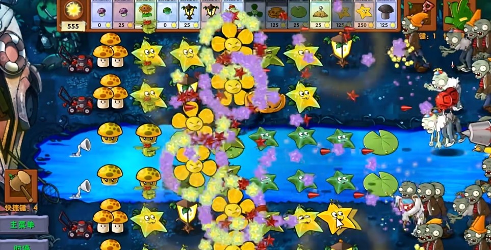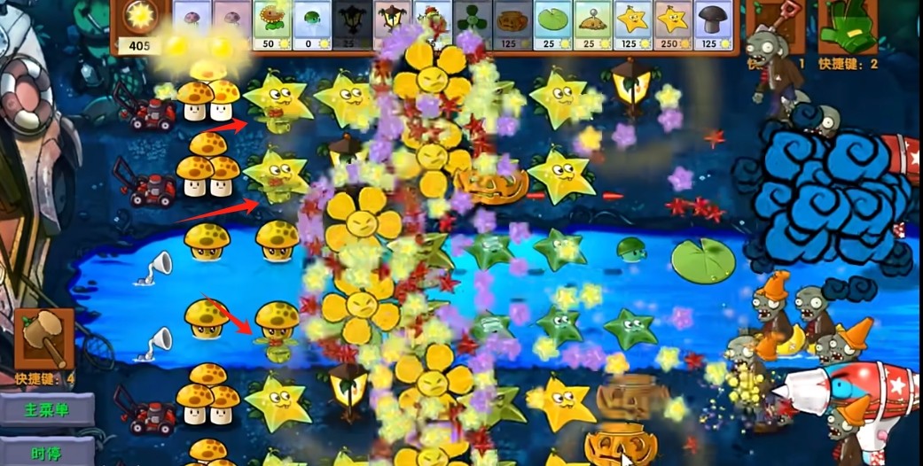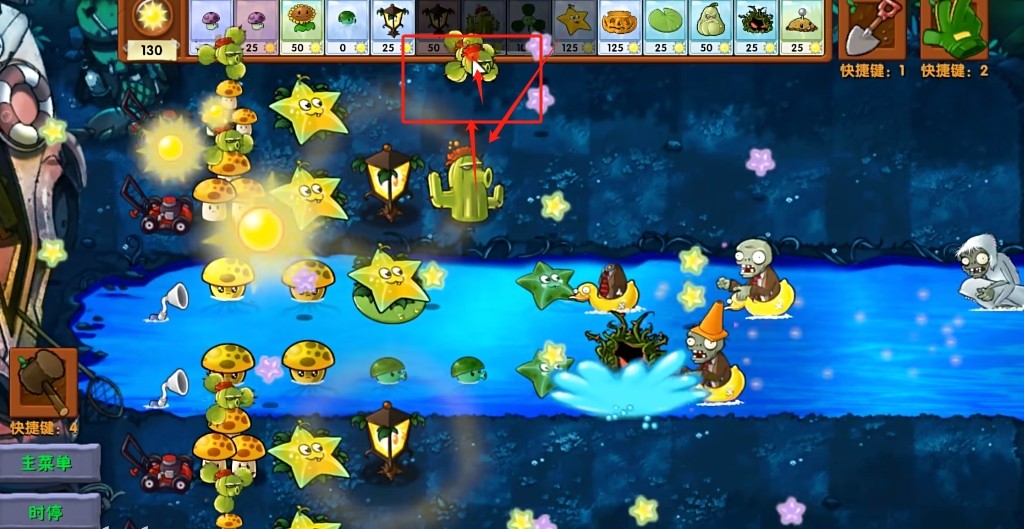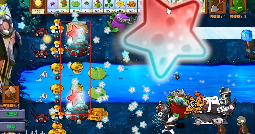 5、海星射手的星星是四散攻击的,有了仙人掌杨桃可以帮助星星回来向僵尸方向进行攻击。