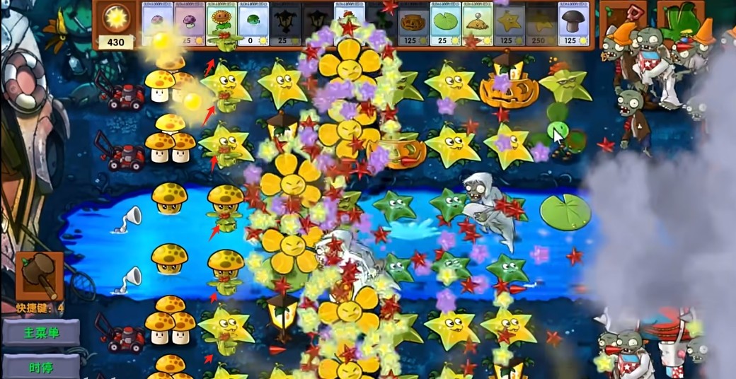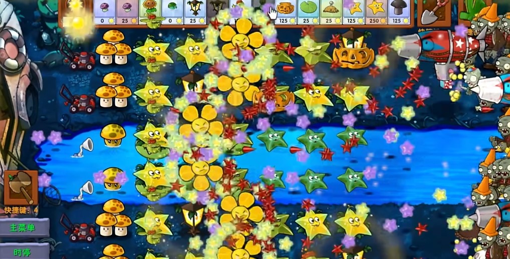 每隔一段时间可以生成一个大星星,向僵尸方向落下,变成几十颗星星攻击。