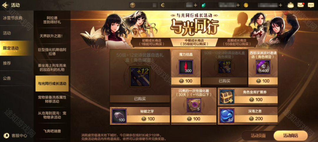 在与光同行活动商店兑换+12史诗武器、+10史诗防具和团本首饰,集齐一套史诗装备。