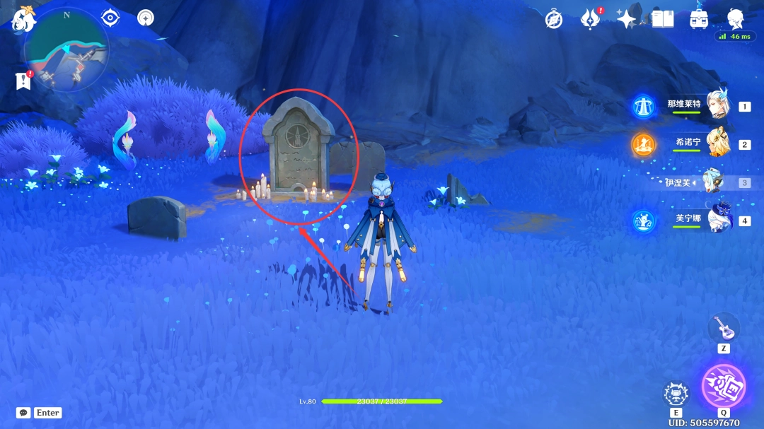 7.过完剧情后,我们传送到「聚所·终夜长茔」,来到下图位置