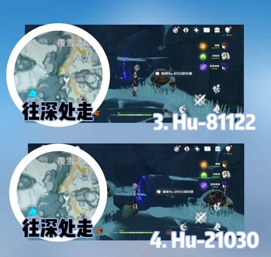 Hu-81122,Hu-21030 - 从锚点进入山洞,往标记处前去,2个遗迹守卫在山洞深处(註:进去前有石头遮住,需要拿深赤之石,用大剑角色/重击该石头)往里面走就能看到2个遗迹守卫