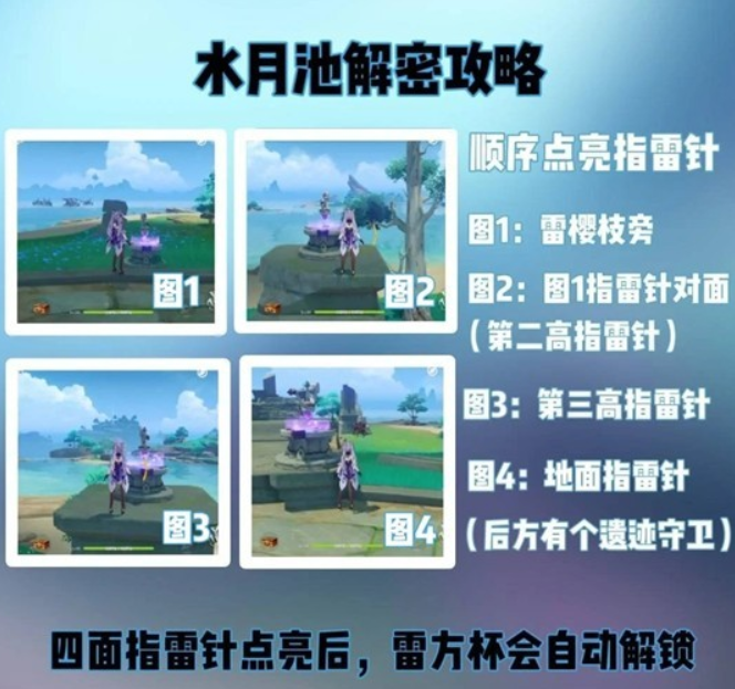 - 注意:必须照着顺序点亮,就会解锁前方的雷方杯。