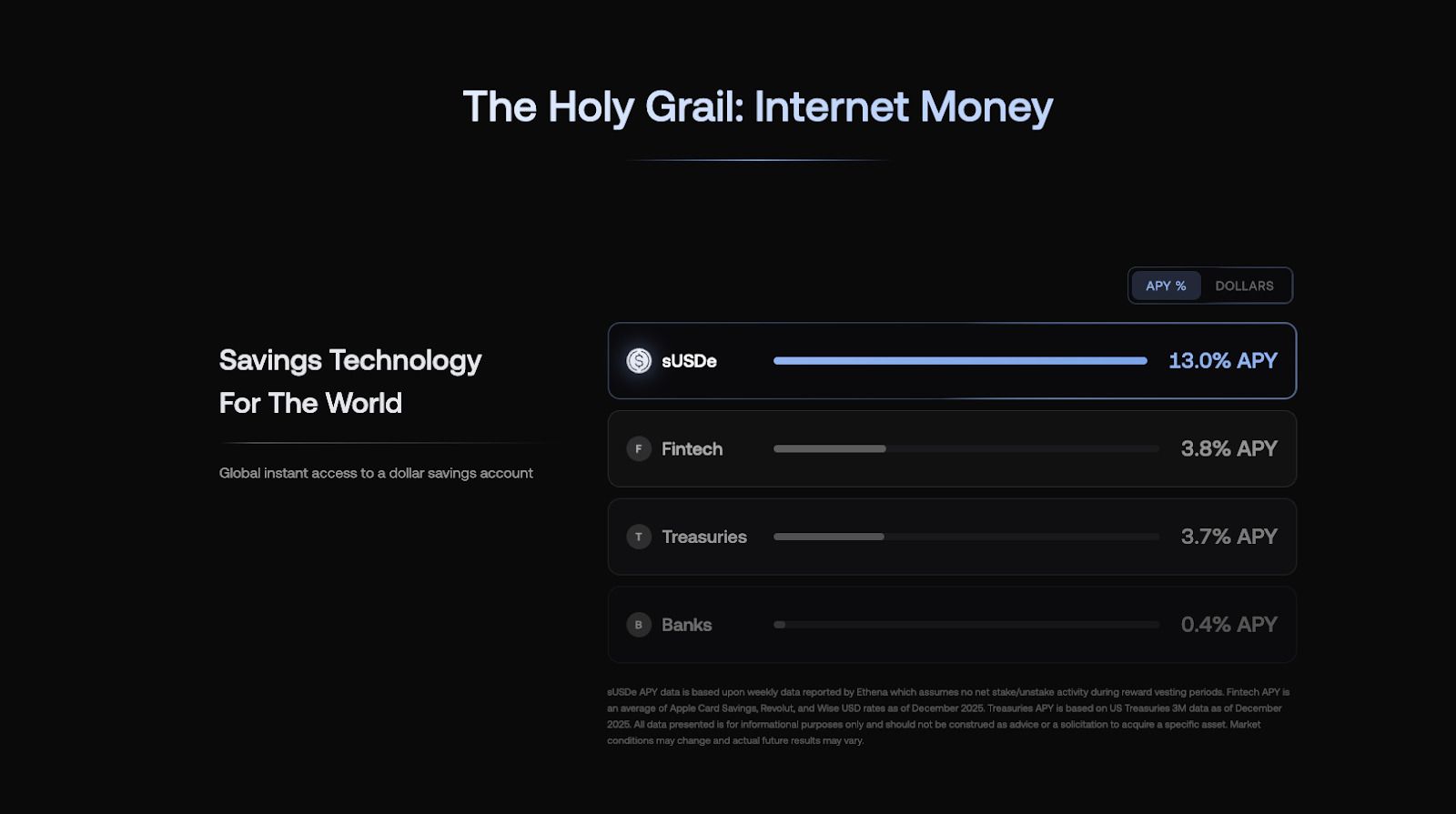 sUSDe 采用:升级为 sUSDe 的 USDe 份额及其在借款市场和结构化产品中的集成,表明了对“互联网债券”的需求。